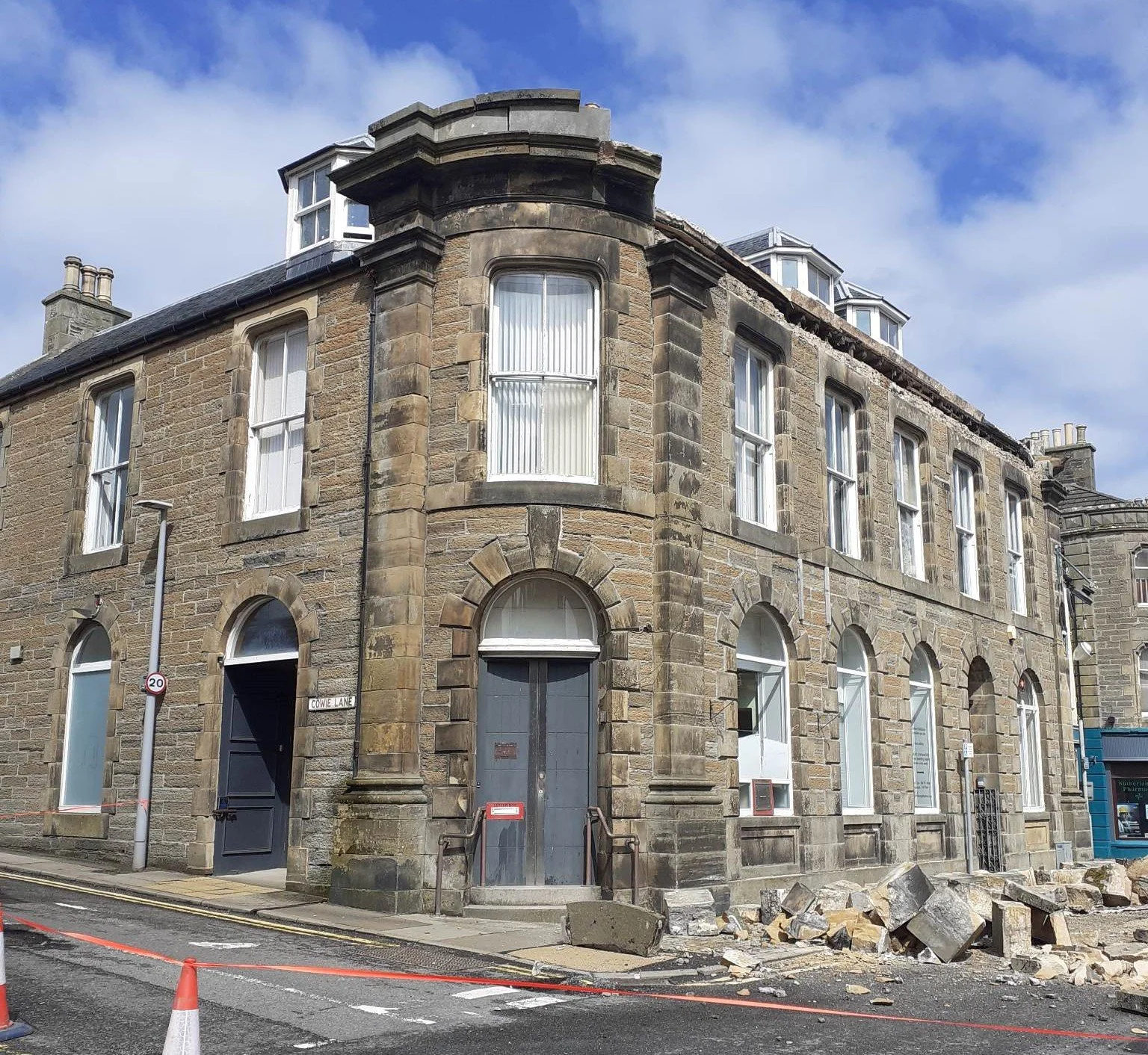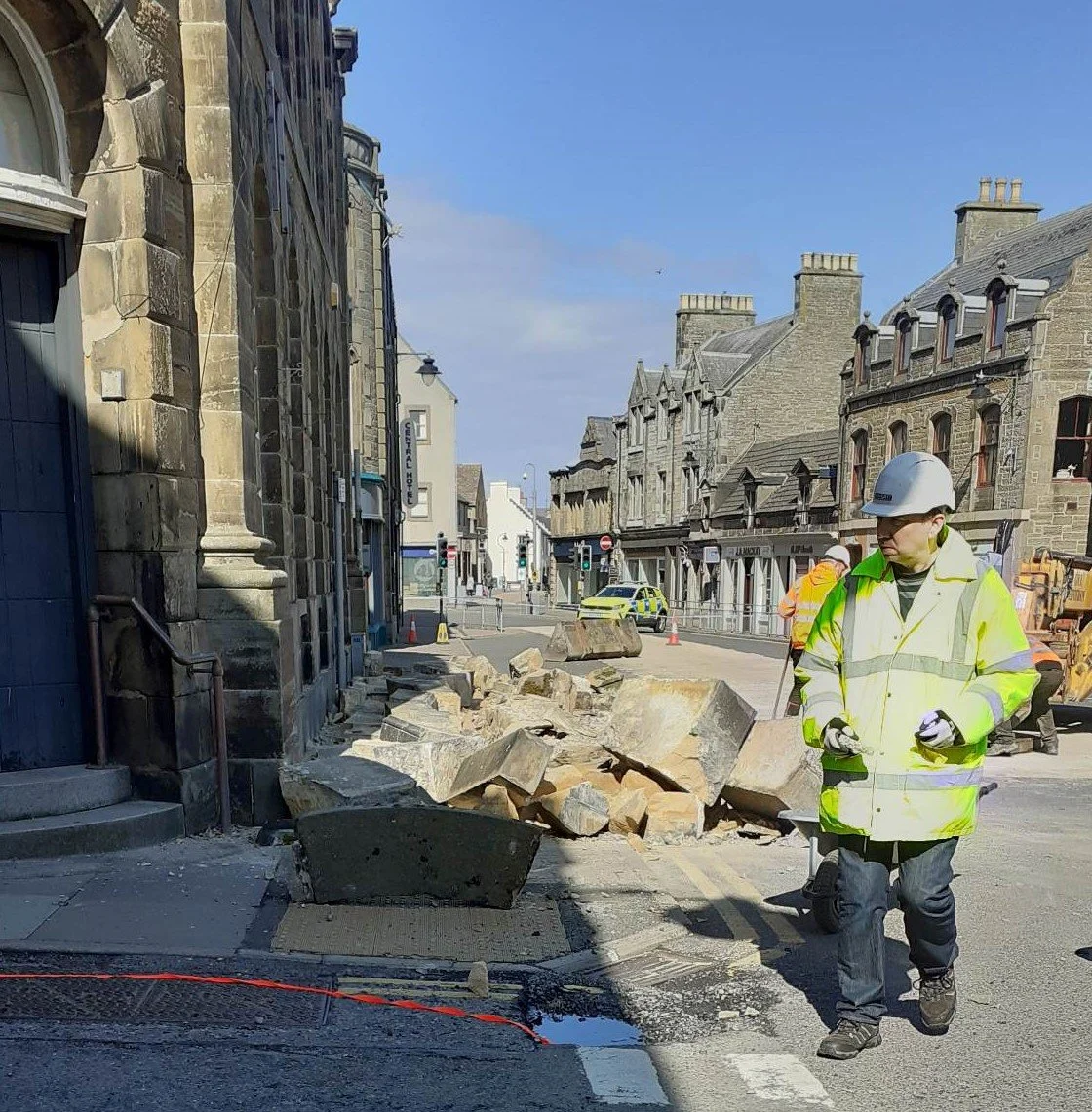 Just a week or so ago in Thurso, the next town over from me, in the early hours of the morning, the coping stones of an old building on one of the main thoroughfares collapsed. Dumping a ton of heavy sandstone blocks onto the pavement below.